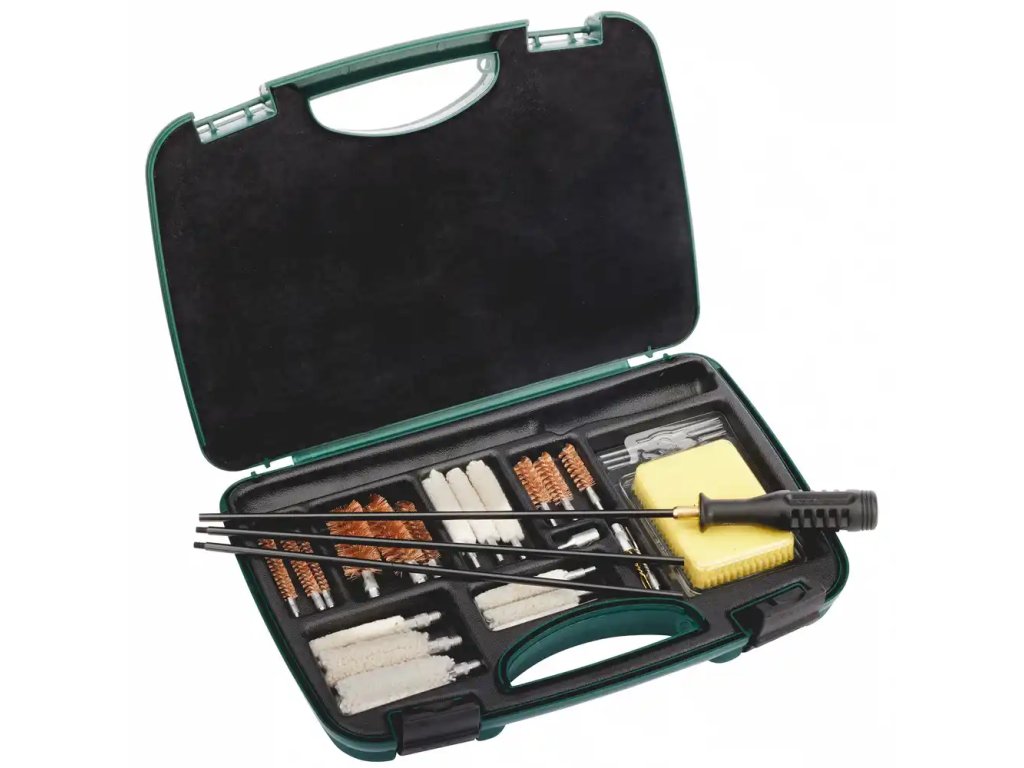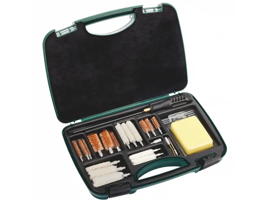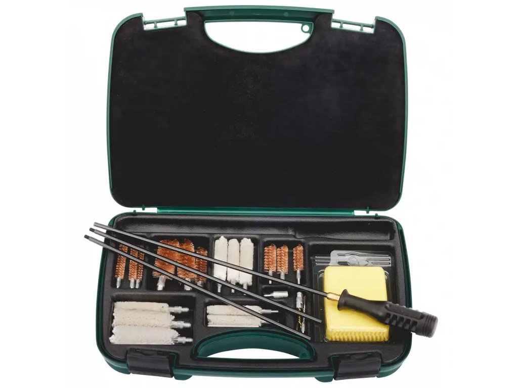 Čistiaci set je vhodný pre starostlivosť o dlhé a ručné zbrane v kalibri 12, 20, .410, .38, .40, .45, .22, 7 mm a 8 mm a obsahuje okrem iného aj čistiacu tyč s vnútorným závitom 8/32.