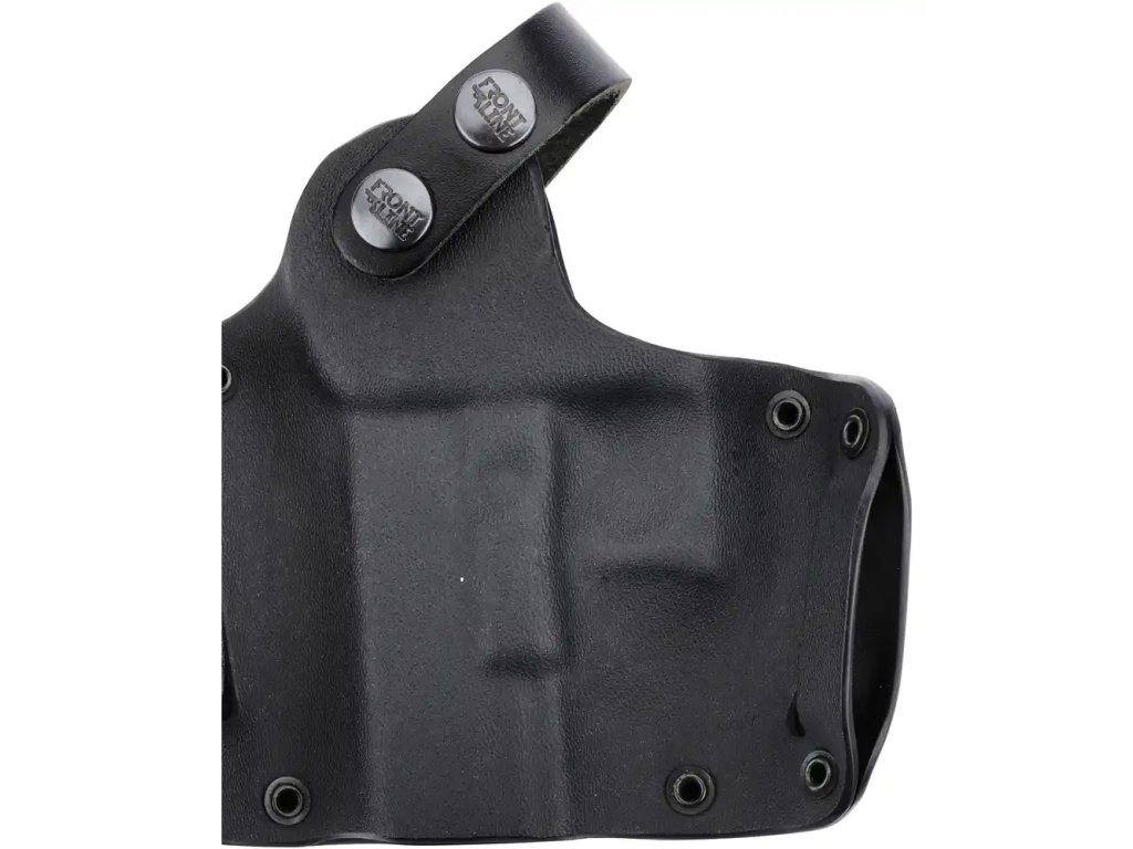 Pouzdro Front Line Half Pancake Kydex Holster možno na opasok pripevniť obzvlášť jednoducho a mimoriadne bezpečne vďaka vnútornej drážke. Hodí sa na opasky až do šírky 40 mm (1,57 palca), čím poskytuje vysokú kompatibilitu. Tento nástavec zaisťuje, že zbraň je vždy na dosah. To je zabezpečené aj tým, že zbraň možno rýchlo a bezpečne vytiahnuť. Týmto spôsobom ste s púzdrom Front Line vždy pripravení, keď na tom najviac záleží.
